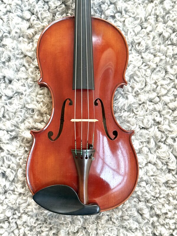 Magnifik fiol av verkstaden Charles Baptiste Collin Mezin 1934, tredje generationens franska mästare. Tillverkad 1934, utsökt materialselektion och fina detaljerna som snäckan, hörnen, inläggen etc. Allt i originalskick, inga sprickor eller gamla reparationer. Vackra detaljer, djupa profiler och härliga linjer. Hela instrumentet är i perfekt skick med välbevarad original lack utan större slitage. På insidan finns signerad original etikett, model Victorieux. Nu har fiolen åter sätt dagens ljus efter många bortglömda år och har renoverats i min verkstad med nytt stall i bästa kvalitet, ny ljudpinne, ny stränghållare och hakstöd, slipning av greppbrädan, djuprengöring och justering etc. Fina originella stämskruv med inlägg, nya Evah Pirazzi strängar.